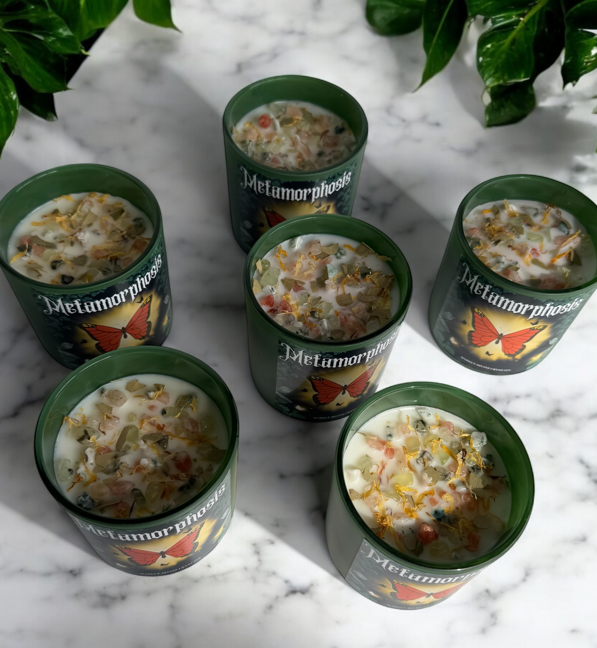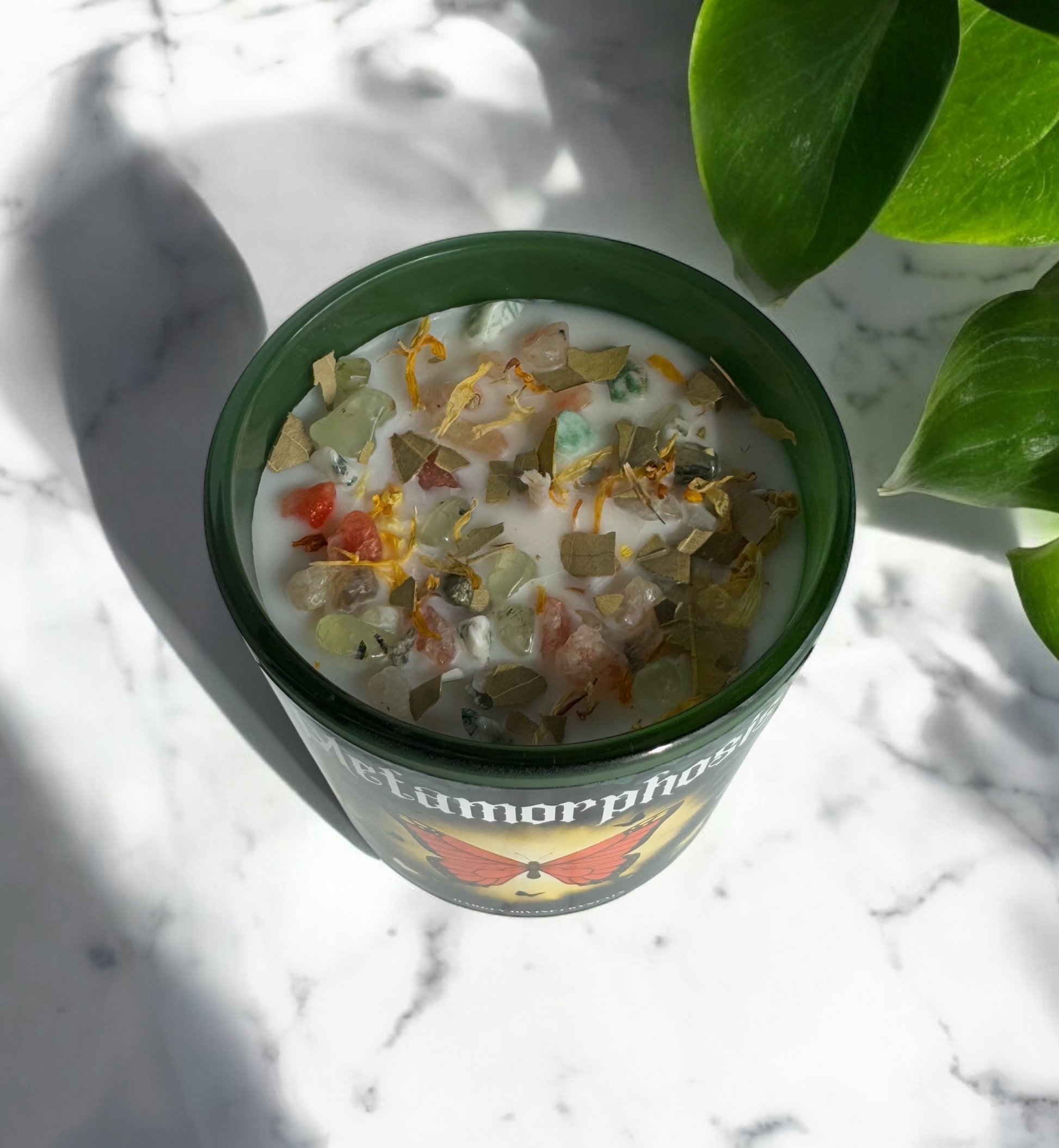 Call your energy back and align with your highest self with our Metamorphosis candle. Created for vitality, healing and uplifting, this candle serves as a reminder that just like nature, we go through cycles of highs and lows, yet one thing remains constant - life always finds a way to persist and endure.